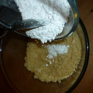 Put the almonds into a mixing bowl. Add the icing sugar and mix together.