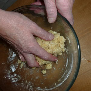 Now it's time to get messy! Get your hands in and gather the mixture together into a big ball. If it's too sticky add some more sugar, if it's too dry add a little more rose water.
