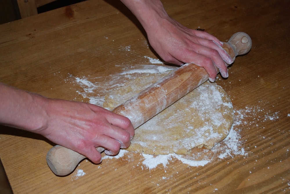 Roll out the dough so that it is quite thin. Use some flour on your rolling pin and work surface to stop the dough sticking.