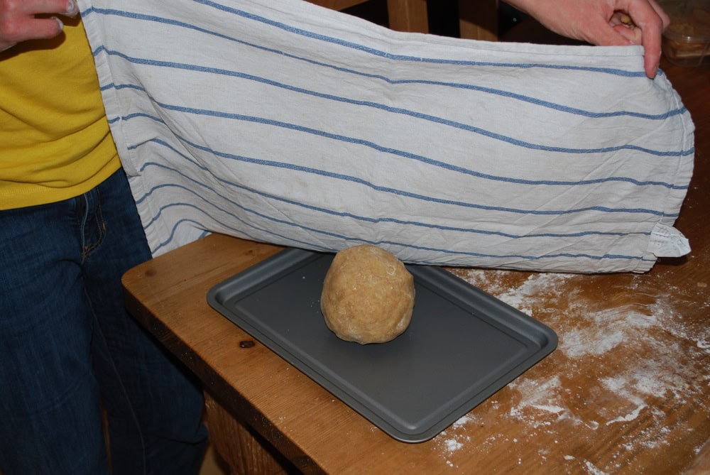 Make the dough into a ball and leave it to stand for 15 minutes covered with a clean tea towel.