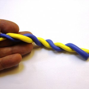 Plait the ‘sausages’ of clay together (wind one colour around the other).