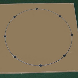 Draw a circle about 25cm in diameter onto your MDF base board. Mark eight dots around the circle at regular intervals.