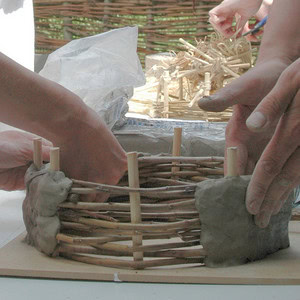 Time to get mucky! Daub the walls using clay. Wait for the daub to dry before adding the roof.
