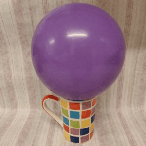 Inflate the balloon until it is roughly 20cm across and tie a knot in the end. Place your balloon into the empty cup/beaker with the knotted end pointing into the cup. This will keep the balloon steady while you work on it.