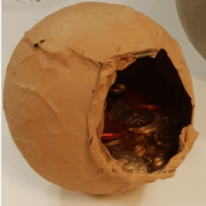 Your pot is now ready for some treasures to be hidden inside. We filled ours with chocolate coins!