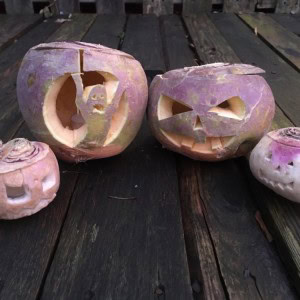 Cut off the top. This will be used as a lid so make sure it’s wide enough but don’t cut too low as you need to be able to carve the face. Make sure to have an adult help you with this step as you will need to use a sharp knife.