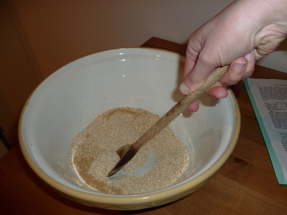 The quantities in this recipe are not very accurate! How big exactly is a ‘breakfast cup’?! And how much is a ‘little milk’?! Recipes today usually give exact amounts, usually in grams, of each ingredient needed. When making this recipe, you may find that you need to add more of some ingredients to make the mixture the correct consistency. For example, our mixture was too sticky, so we added extra oatbran.