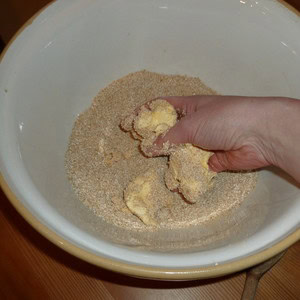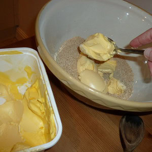 Rub the butter or margarine into the dry ingredients using your fingertips.