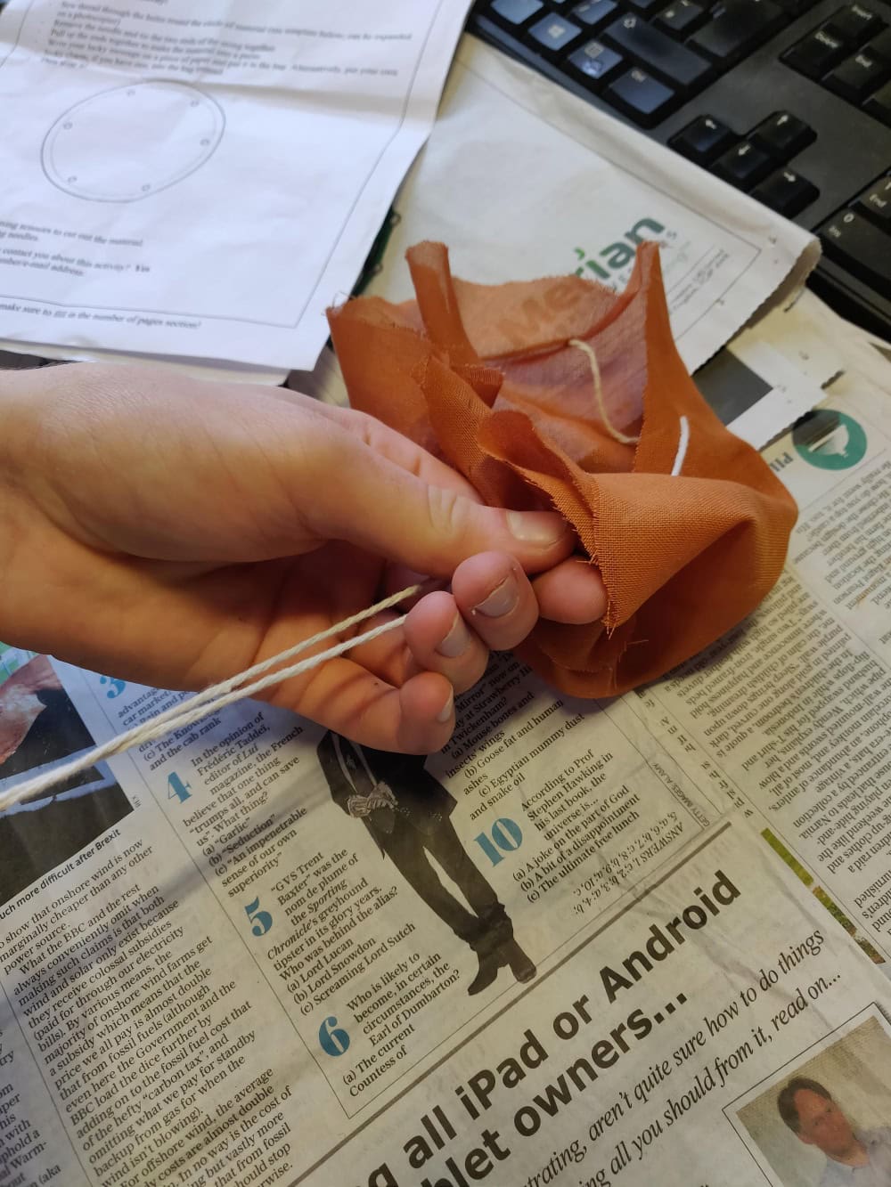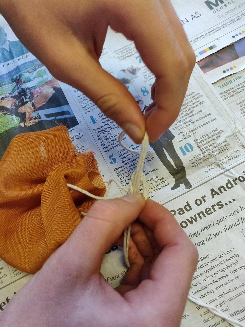 Pull the string to tighten the pouch while leaving it open enough to add the lucky message or charm.