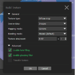 Finally, we can add the texture to the model. Once again, it’s “Workflow” followed by “Build Texture” with the following settings. To add or reduce the level of detail, you can change the “Texture count” value between 4096-16384. However, increasing it above 10,000 may result in your computer not being able to complete the model.