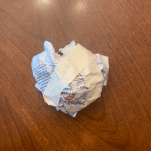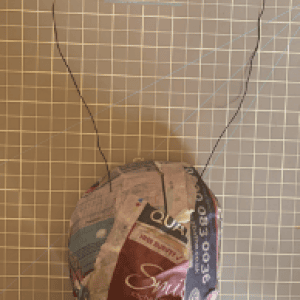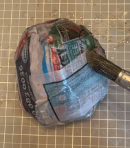 Firstly, scrunch some newspaper up into a ball. Add a few more pieces to make a bigger sized ball. Then tape around the ball to make sure the pieces stay together.