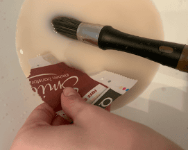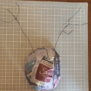 Apply this to the ball until the entire area is covered. Make sure it’s smooth (you may need a paintbrush) and set aside to dry. This will be the head of the antler ornament.
