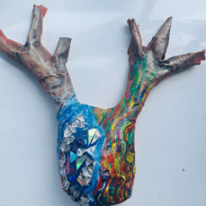 Now for the final layer of papier mâché! Cover all of the antlers and the head, blending the antlers in so you can’t see the tape. Leave to dry.
