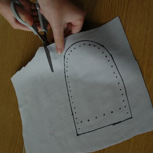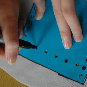 Draw around the template on the back of your leather or leatherette using a marker pen, mark each hole too. You need to make two of these shapes to make your purse.
