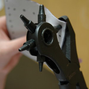 Punch holes in the leather where you've marked the dots, using the rotary hole punch. Or you can make the holes using a sharp tool like a bradawl; you'll need to get an adult to help. It is very important that these line up on both pieces of leather (if your hole punch is strong enough, punch through both pieces at once).Step 5