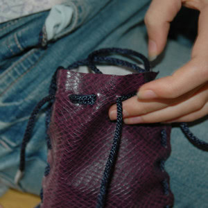 Tie the two ends of the cord together to make a loop at the top of your purse (this loop is how the purse would have been hung from a belt).