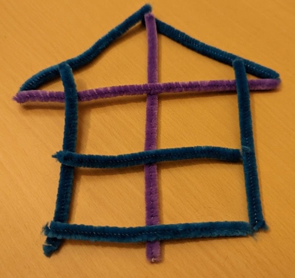 Place two 15 cm long chenille stems and six 10 cm long chenille stems on the table as shown in the diagram below.