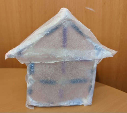 Stick sheets of tissue paper with glue to construct the surface of the paper house.
