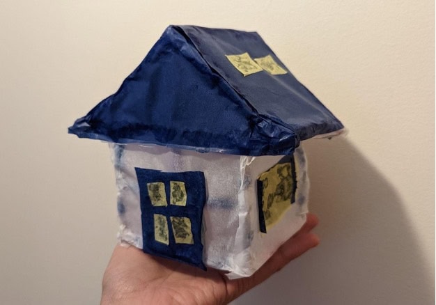 To make the paper house more attractive, you could draw patterns or stick decorations on it.
