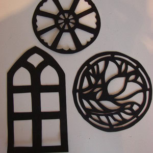 First of all you need a design! Try doing some sketches and think about style, colours and patterns. Remember that all of the areas of ‘leading’ (the parts of the window that you will leave as black card) need to join up.