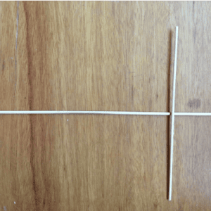 Tie the skewers together with string, keeping the right angle. A dab of glue can be useful to keep it in place.