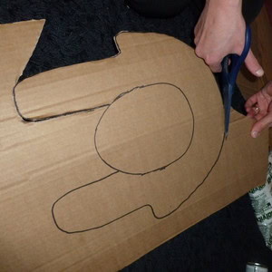 Draw around your face mask in the middle of your piece of thick cardboard.