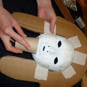Use masking tape to stick your face mask into the middle of your template. You will need to turn over your mask and stick it on the inside too.