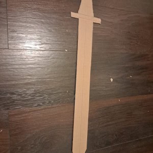 Use a pair of scissors or a craft knife to cut out both the blade and hilt of the sword as one piece.