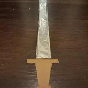 Now you can make your sword more realistic by using any decoration that you have laying around. For example, you could paint the bland with silver paint or use tin foil to wrap it. Use sticky tape to keep it connected to the blade.