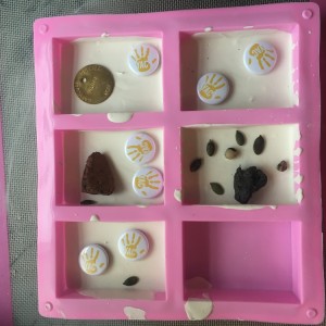Drop an object into the setting plaster, that will act as your ‘oldest‘ artefact—a potsherd or bone. The closer it is to the bottom, the older it is. No plastic at this depth!