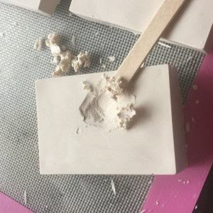 Take your clay tools or lollipop stick and begin to chip away at the block. Use your paintbrush to clear the block of dust if necessary. Start where you think an artefact might be and if you find one, keep going down in layers!