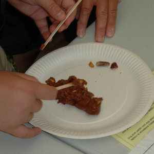 Congratulations! You’ve now made your fake coprolites. Get your brothers, sisters, friends or parents to excavate them and collect the dietary evidence. Use lolly sticks or cocktail sticks to make sure you don’t miss anything – some of the evidence is really small. Download a poo excavation sheet (available in the description above), which will help you to record the evidence that you find. Use the evidence to work out who ‘did the poo’! Aztec diets included pumpkins, tomatoes, maize, corn and peppers.