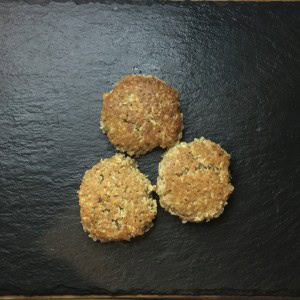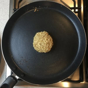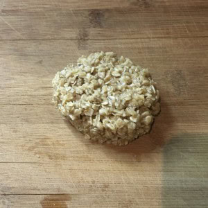 When cooled, take a handful of the mixture, roll into a ball and flatten down to make a small, flat cake.