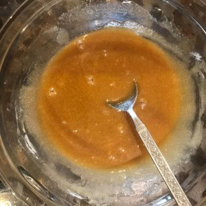 In the microwave heat the butter, sugar, and syrup until they have dissolved (about 30 seconds). After allowing it to cool slightly, mix into the dry ingredients. If the mixture is too dry, try adding more melted butter to the mix.