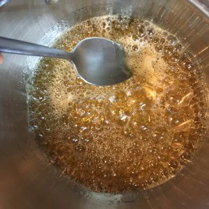 Turn the heat down to very low, add the cinnamon, pepper, saffron and food colouring and mix (you may need to gently whisk the mixture to get it to combine).
