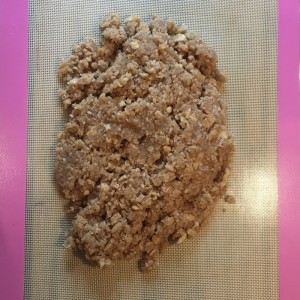 The “dough” might be crumbly and sticky until it has cooled. This makes kneading very difficult, so once you can see the mass forming to the shape of the pan or can almost squish it together with a spoon put it on some parchment paper or a baking sheet to cool.