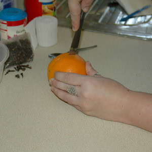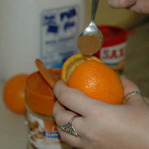 Sprinkle a spoonful of cinnamon and a few cloves into your orange.