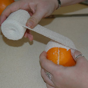 Tie a knot or secure the bandages with a safety pin when your orange is completely covered.