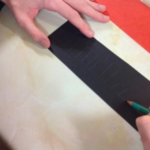 Draw a wavy line along the top of the red tracing paper and then cut along this line.