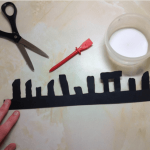 Mark a line on the black card which marks the depth of your base. Then draw the outline of your stone circle on the card, making sure not to draw below the line. Your stones should not be more than 1cm apart.