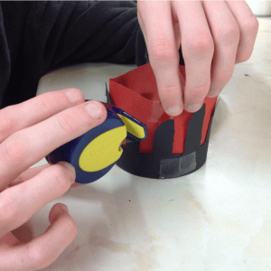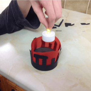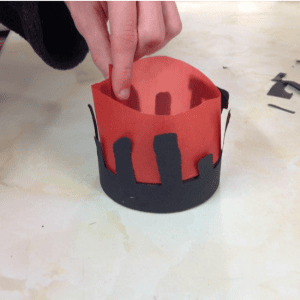 Curl the red tracing paper around and place it inside your stone circle.