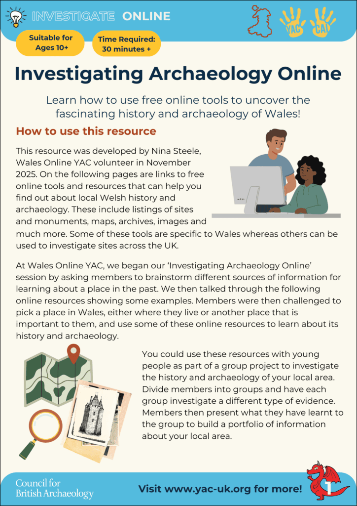In November 2025 one of our volunteer team, Nina, shared her knowledge of how to investigate archaeology online. In this practical session we learnt about some of the free online tools we can use to investigate local history and archaeology, such as archaeological records, maps, archives and placenames. Nina helped us create a new resource to help YAC leaders and members access online tools for investigating the history and archaeology of their local area. Explore these resources here!